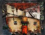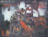 Maisons Blanches Huile sur papier 55x71 - 1980 |