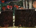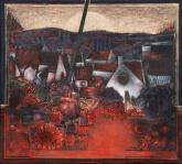 Paysage à la tache rouge Huile sur papier 90x70 - 1987 |