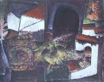 La fenêtre Huile sur papier 70x55 - 1980
